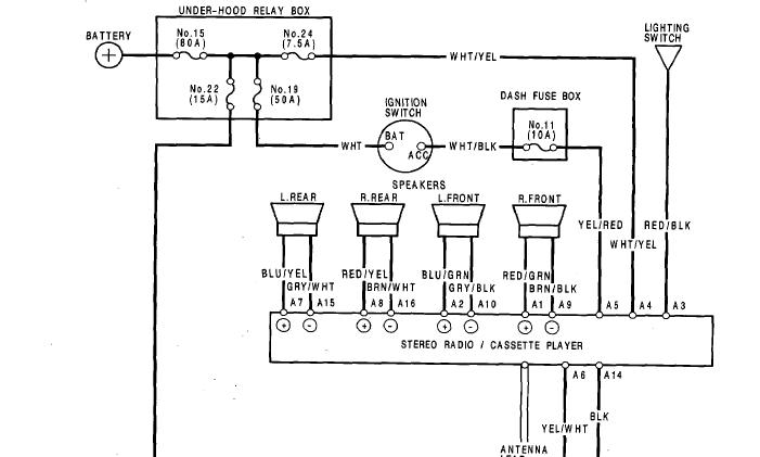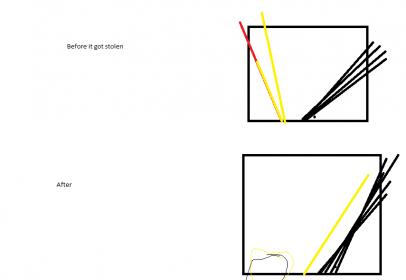As you can see, the square is the hole where the stereo goes and the lines coming out are the lines connected to the car that were connected to the originial stereo. I drew them black because I didn't want to use every color. The yellow just looked pretty so I put it in there. The red/yellow is the one I am talking about. It is the one connected to the power supply. As you can see, it is in the before picture, but not in after. I tried sticking my hand inside the hole and I can't feel where the wire would be.