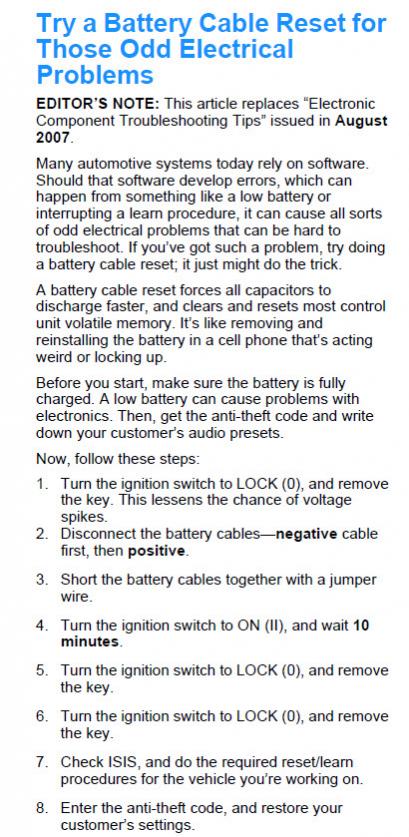 Just disconnect the battery cable and wait and little bit.