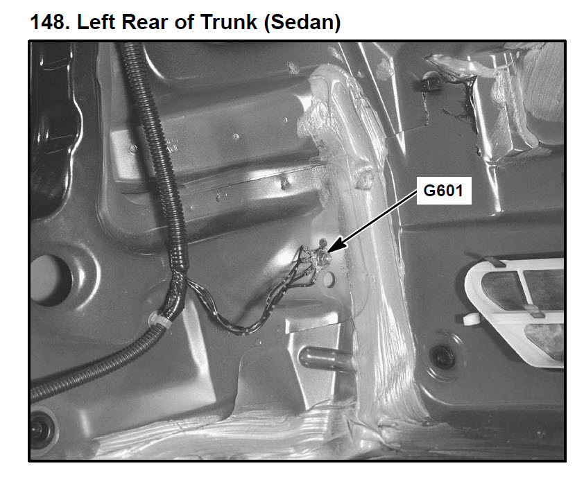 Check the ground connection and wires at G601. You'll have to remove the interior trunk trim first (remove four plastic clips, then carefully pull up the trim piece).