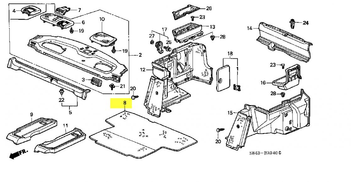 Spare tire lid, Honda part number for your gray interior color: