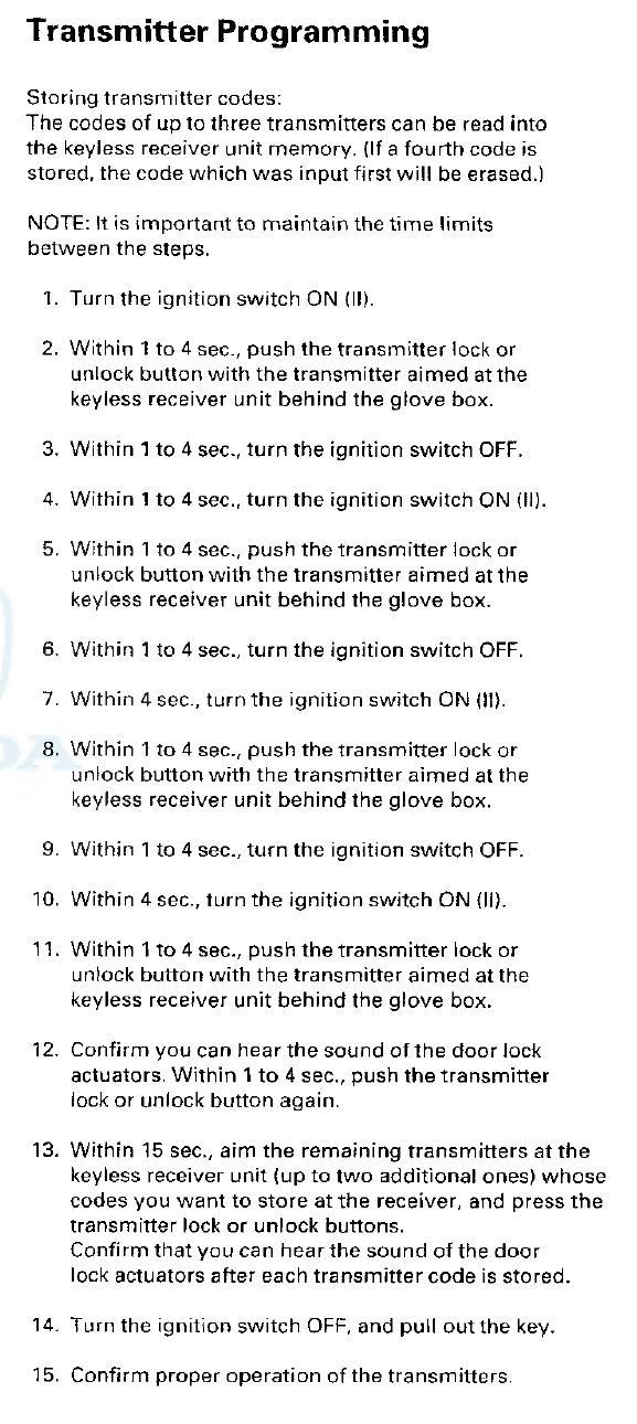 Unable to program keyless remote: 2001 Honda Accord LX