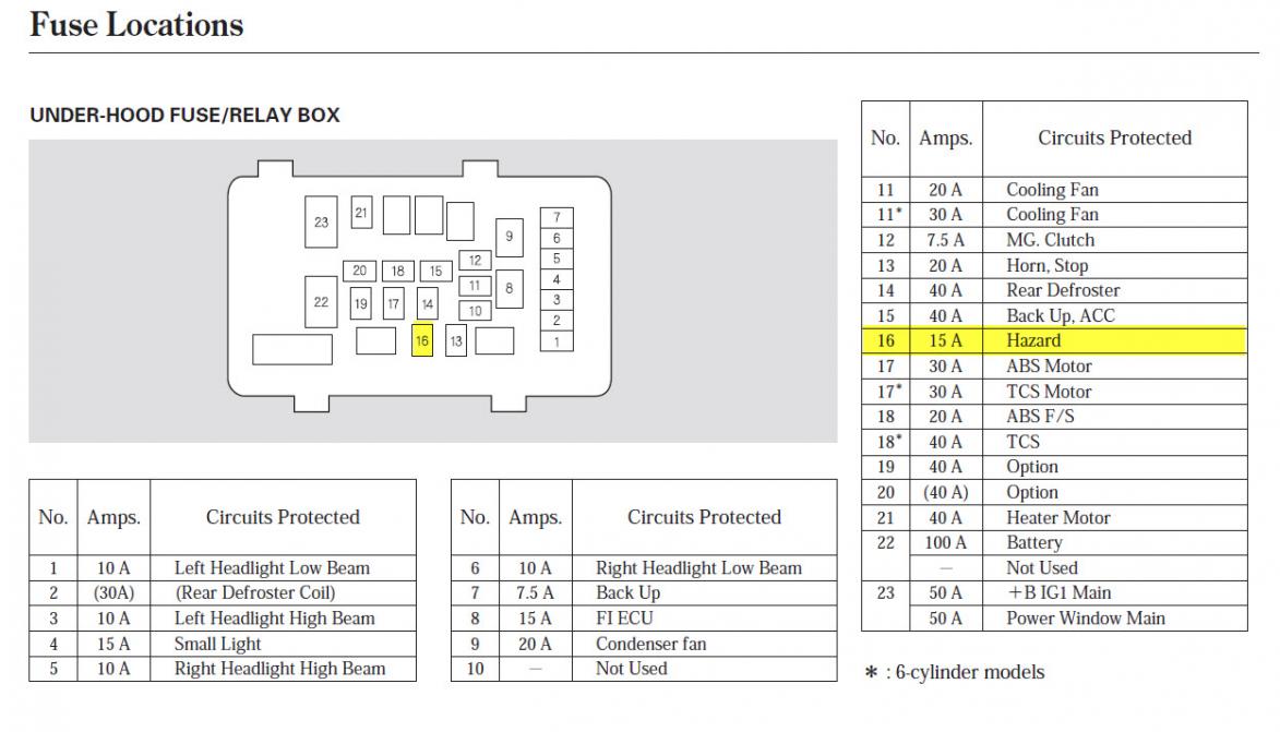 1. For the hazard lights issue, check the No. 16 (15A) fuse in the under-hood fuse box. If the fuse is okay, the hazard switch (which is the button with the red triangle) may need to be replaced. Replacing the switch is just a matter of gently prying the vent trim panel out, disconnecting the hazard switch electrical connector and squeezing the hazard switch clips to pop it out. Refer to Figure 9 and 10 photos in link on how-to-remove the vent trim. Disregard Figure 11 and 12 photos.