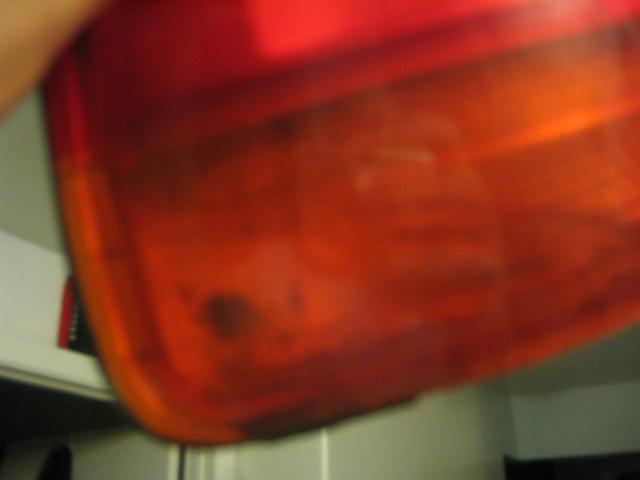 I was kind of wondering why the rear driver-side turn signal amber light area on my 92 Accord seemed dimmer than that of the right side. Upon examination I discovered it's because the lens is filled with water just up to the level of the bulb. Not good. Pointing to it in next photo: