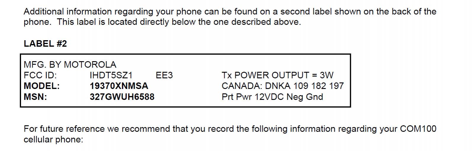 Look like it is related to a Motorola cellular phone. See attached pic. for somewhat similar label and link: