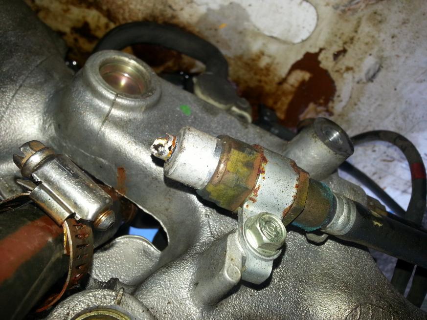 I'm replacing my head gasket and broke this sensor. Some sort of coolant sensor. Line goes from back of carb to the sensor that is mounted underneath the intake manifold. It then hooks to an green and yellow wire that goes to the main harness.