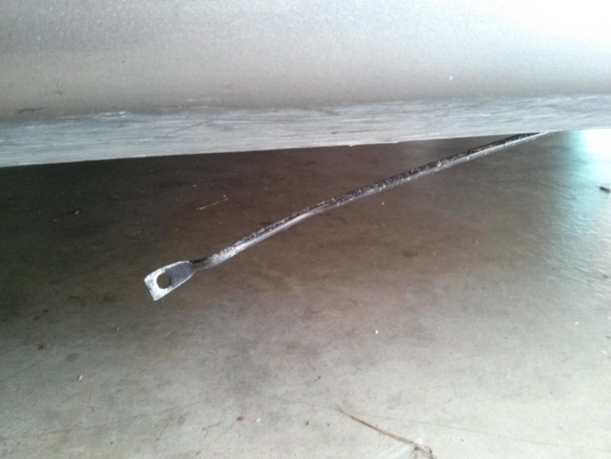 I've got a 2000 Accord V6. The car has been making a knocking noise, mainly under braking or some bumps. I was thinking it was the mounts, but we found this sticking out below the car. Not sure if this is what is causing the noise. It looks like a strap of some sort, it is on the driver side below the B-Pillar.