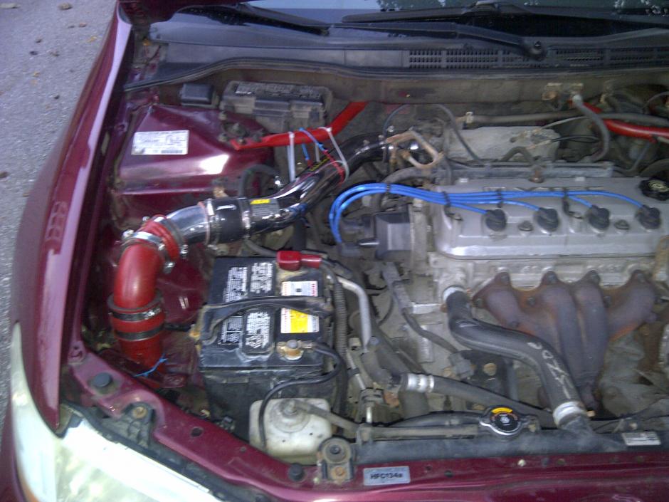 Just thought I would share my intake that i bought and customized a little bit. Its in a 6thGen f23a1. Started by buying an AEM cold air (actually more of a short ram) intake and installing it. It made some good noise but on hot days you could feel the power loss from sucking in all the hot air in the engine bay. So i rerouted it, bought some 2.5 inch aluminum piping and a silicone connector and moved closer to the battery and over the original intake resonator hole so it could grab some cold air. had to do some cutting of the piping but in the end i got it all working and end up with a nice little customized mod that made an even better noise.
