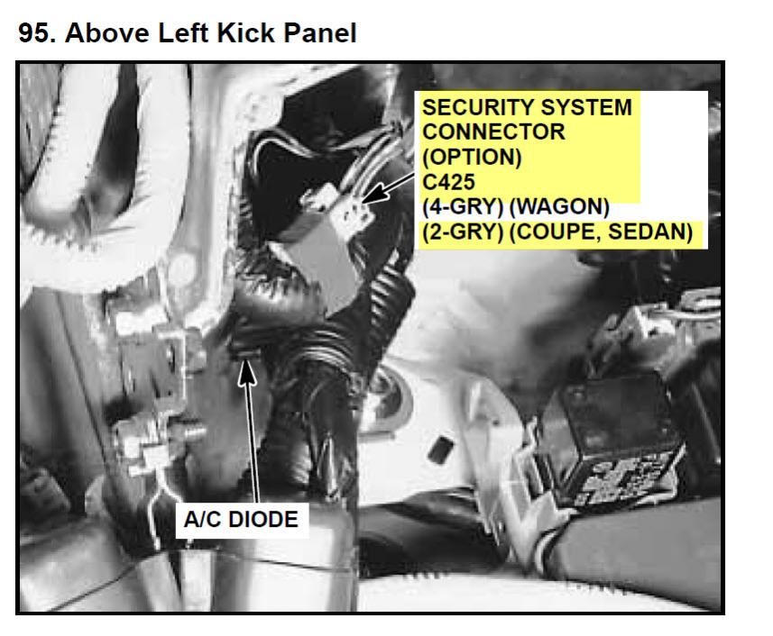 • Lock wire to car's Blk/Wht lock wire (Blk/Wht is a wire with black colored insulation with a white stripe running through it).