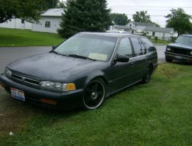 ive had accord wagon dropped on 18's, but i sold it due to the cracked trans. i am picking up my new accord today after i put a new battery in it today. also dropped on 18's with 2 tone paint. who ever dropped it did some thing wrong and it's eating up tires on the right rear. so im going to tackle that as soon as i get it home today