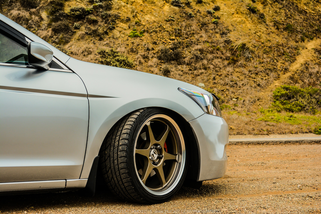 Rims are Buddy-club Racing P1 Spec-II 19x9 Front and 19x9.5 Rear. Matched with Buddy Club Neo Lug Nuts.