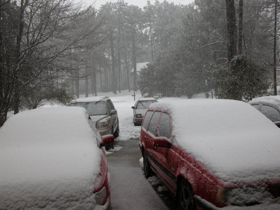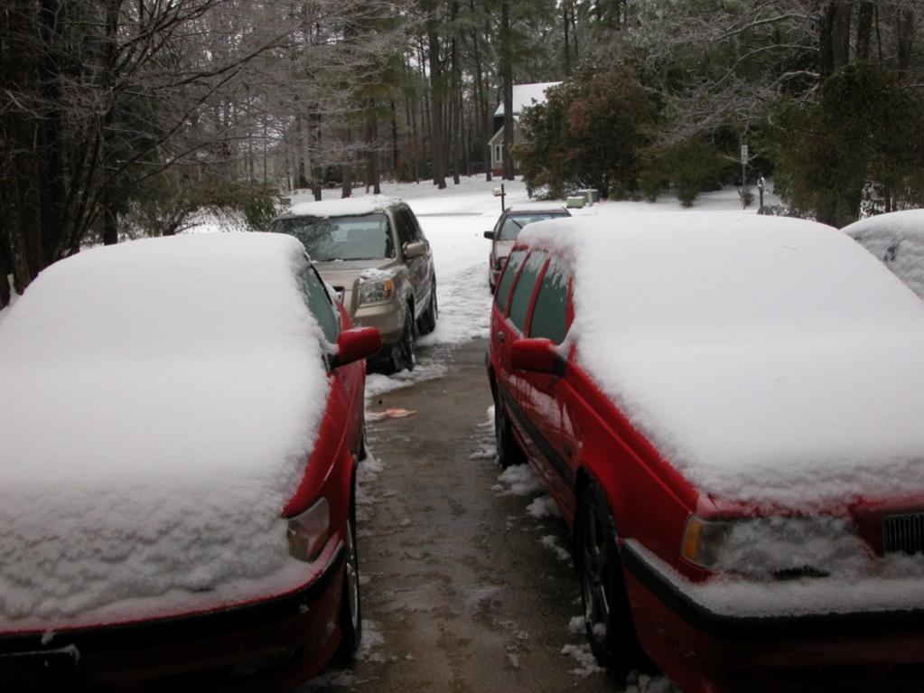 I live ~25 miles north of Raleigh NC and if you've watched the national news you've seen (pretty sure it made it there) what we've been up to in the last ~30 hours. We got a good bit yesterday and then a break, then another round this afternoon.