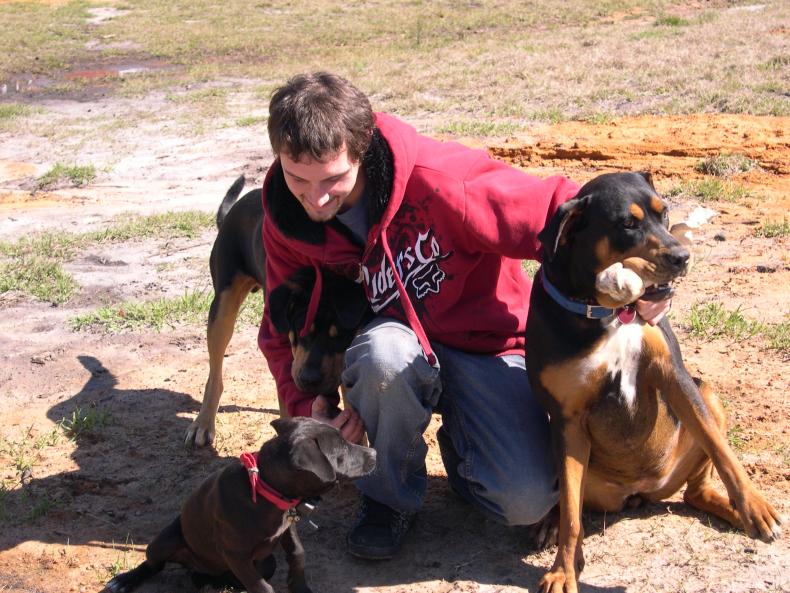 4th - pic is Tracey aka Sweet Baby Girl (Rot and Bloodhound cross) On the right w/ bone in mouth