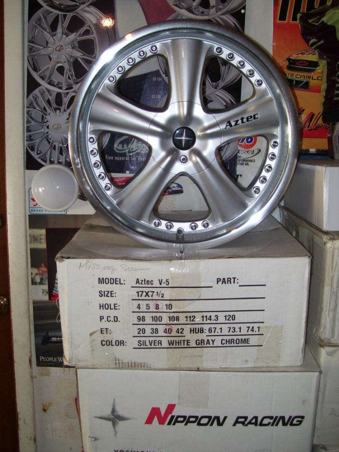 These rims are 17" X7.5 " AZTEC V 5's by Nippon Wheels