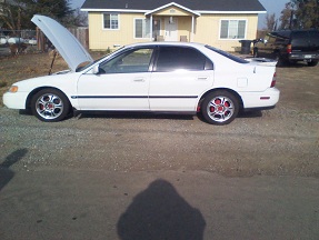 I'm selling a 1995 Accord that was given to me as a xmas present by my uncle that moved out of state (I know kinda messed up but Im not that into honda's im more into the vw scene.) The engine is a 16v sohc f22b2. It was rebuilt about 50k ago, it runs and sounds great with an aftermarket exhaust, sits nice on some adjustable coilovers. The engine is all chromed out from pullys to headers my uncle really made the engine bay presentable. I was hoping to get 3,500 for it, but I am willing to negotiate. Please no lower then 3,000 though I'm actually trying to get something close to its value.