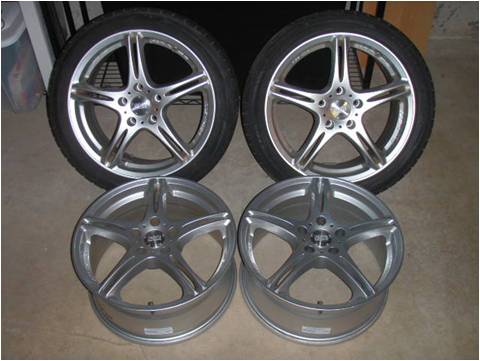 Beautiful and light weight. Driven on for 3 years. Good condition, few minor chips you have to know to look for to see. Ends up giving you 8.5" tire patch front and 9.5" rear...very grippy! Military move overseas. Must sell quickly. E-mail Mike at "mjraynoha@yahoo.com" if interested or haggle.