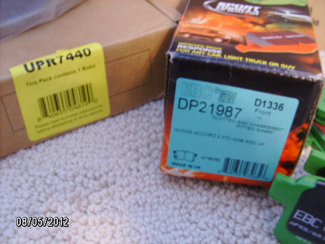 Brand new, never used EBC brake parts for 2005-2010 Honda Accord or 2009-2010 Acura TSX. EBC sent me the wrong parts; didn't want them back. Going in the recycle bin if nobody buys them.