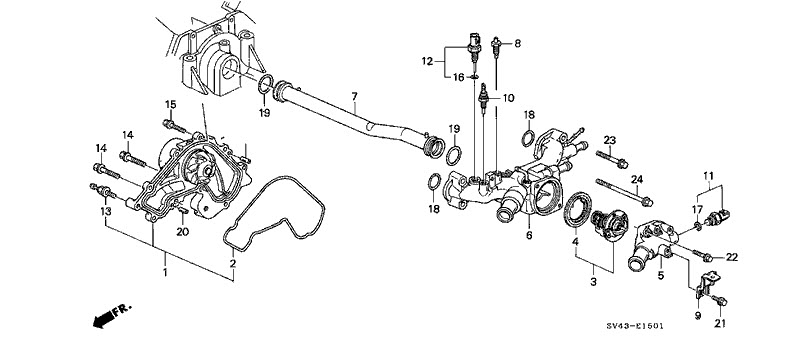 It's called a water passage. Honda discontinued that part (#6 in diagram).