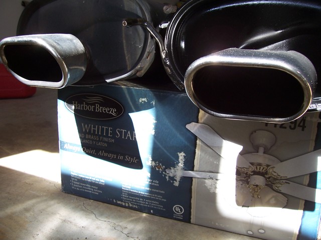 Those are the 2003 Acura CL Type S or CL-S mufflers. They have a thicker chrome tip than the '01 or '02 Type S I believe but they're extremely hard to find =[