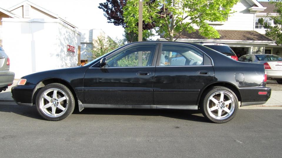 1996 Accord Sedan -- I just mounted 17x7 rims with 215/45-17s on them and the wheels look so much better than stock. The problem is, the stock suspension height is even more apparent now with the new wheels.