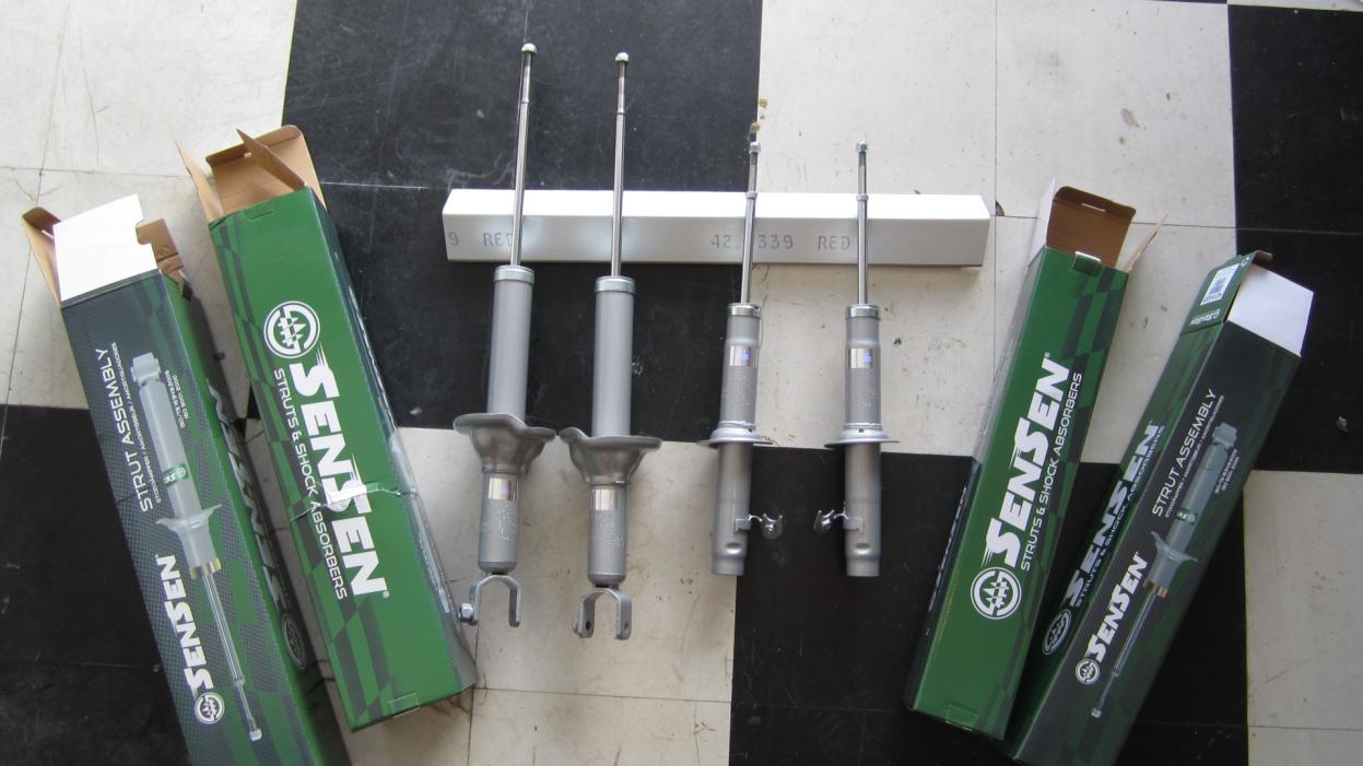 Not wanted to have a car sitting in my driveway for a month with no suspension, I looked around for a set of cheaper shocks, found a lot of positive reviews on the performance of Sensen (mixed reviews on reliability, but positive on performance), so I decided to grab a set and use those as the temp replacements while the Koni's are off being repaired.